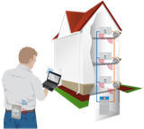Das System Q walk-by besteht aus Messgeräten, die zu einem voreingestellten Zeitpunkt die aktuellen Verbrauchsdaten, und zwar in einem schnellen Intervall, aussenden.